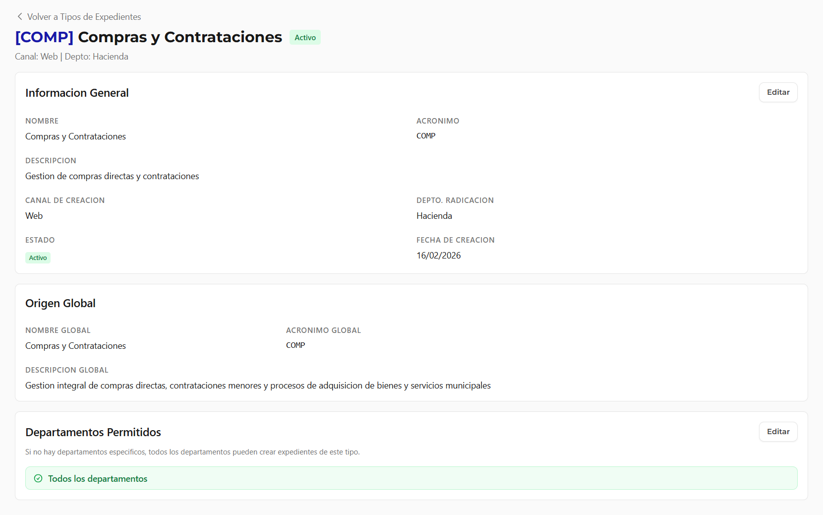 - Todos los departamentos: Cualquier departamento puede crear expedientes de este tipo