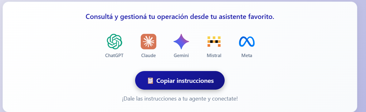 Las instrucciones copiadas contienen la configuracion necesaria para que el asistente externo se conecte a GDI a traves del protocolo MCP (Model Context Protocol). No es necesario configurar nada manualmente.
