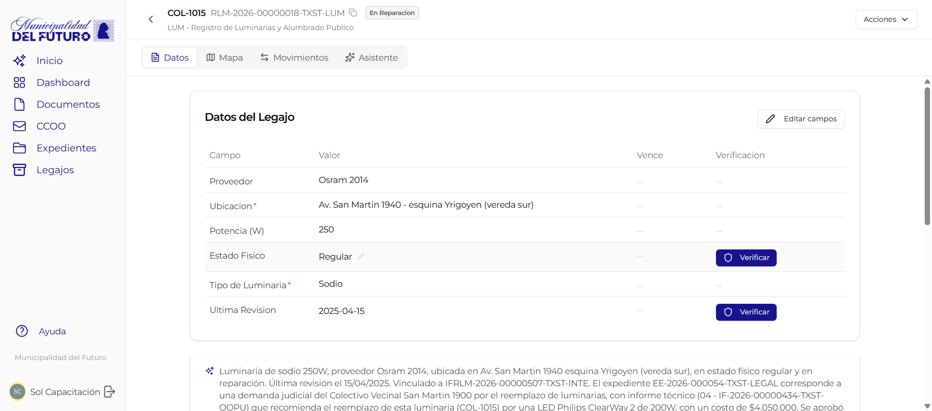 Editar campos de un legajo¶